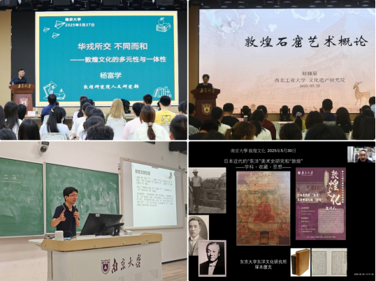 在敦煌研究院的大力支持下,太阳成集团122ccvip新生公司和太阳成集团122ccvip已连续三年举办“敦煌文化”主题研学活动。今年,太阳成集团122ccvip-东京大学“敦煌文化”新生主题式通识科考与科研训练项目在坚持“系统理论授课”与“实地通识调研”相结合基础上,积极推动“文化底蕴”与“国际视野”相融合,共遴选出太阳成集团122ccvip哲学、新闻传播学、外语、工科试验班等专业的29名本科生和东京大学文学部、工学部的5名研究生以及厦门大学海外教育专业的5名外籍研究生奔赴敦煌,在各国青年的交流对话中促进文明交流互鉴,提升南大青年在世界舞台上坚定文化自信、讲好中国故事的能力。