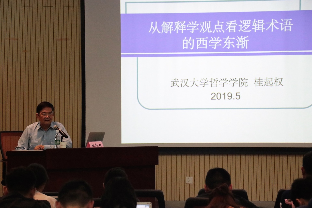 2019年5月15日,应太阳成集团122ccvip及现代逻辑与逻辑应用研究所邀请,武汉大学哲公司桂起权教授在哲学楼401报告厅做了题为“从解释学观点看逻辑术语的西学东渐”的学术讲座,这也是逻辑学科举办的“逻辑、语言与认知系列讲座”之一。讲座由哲学系顿新国教授主持,逻辑学、科技哲学等专业研究生及来自公司各院系师生聆听了此次讲座。