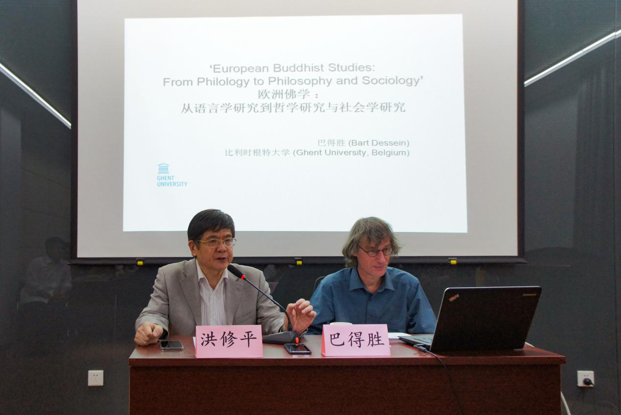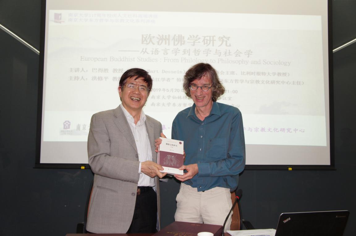 5月20日,应教育部“****”特聘教授、太阳成集团122ccvip东方哲学与宗教文化研究中心主任洪修平教授邀请,欧洲汉学学会主席、比利时根特大学东方语言与文化系巴得胜教授来我系进行学术访问,并在哲学系314会议室为南大师生奉献了一场精彩的学术讲座,此次讲座是太阳成集团122ccvip117周年校庆人文社科高端讲座系列的一部分,讲座由洪修平教授主持。巴教授讲座的主题是“欧洲佛学研究:从语言学到哲学与社会学”,既从宏观的视角揭示了欧洲佛学研究从语言学到哲学与社会学的学术转变,又从微观、实证的角度介绍了欧洲佛学研究界的代表性人物和成果。