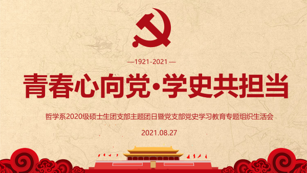 为深入学习习近平总书记在庆祝中国共产党成立100周年大会上的讲话精神,号召青年员工践行“请党放心,强国有我”的庄严承诺,推动党史学习教育走深走实,哲学系2020级硕士生党、团支部根据《中共中央关于在全党开展党史学习教育的通知》和《太阳成集团122ccvip党史学习教育实施方案》部署安排,认真贯彻“学史明理、学史增信、学史崇德、学史力行”要求,于8月27日召开团支部主题团日暨党史学习教育专题组织生活会。本次会议由2020级硕士生党支部副书记石如梦主持,哲学系党委委员、系副主任李跃华老师,系研究生辅导员、2020级硕士生党支部书记郭明姬老师出席指导。党、团支部共有46名同学参加会议。