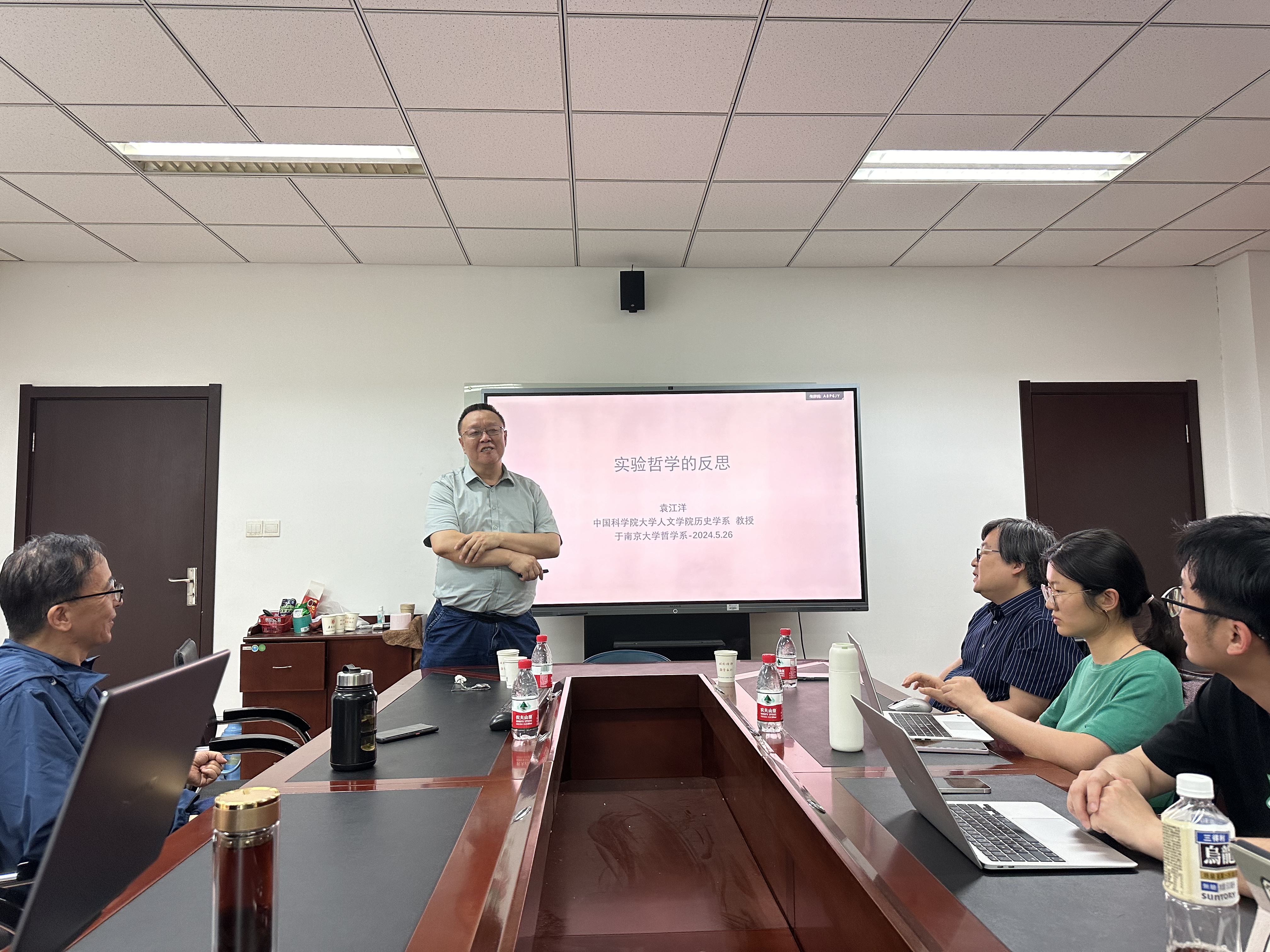 2024年5月26日下午三点,袁江洋教授在我系科学技术哲学教研室主讲名为《实验哲学的反思》的讲座。讲座基于科学史-科学哲学联合研究,分析假说-演绎模式带来的弊端,主张从经验、理论与元理论的元互动入手解说科学探索进程,形成关于实验哲学的五个命题:实验系统命题;经验陈述具有可改写性,因之具有跨style性;实验陈述可改写性的理据;理论与实验相互渗透命题以及科学知识进步机制命题(含实验精致化进程命题)。袁教授着重分析了波义耳、牛顿等科学巨匠的成就及其科技史意义。