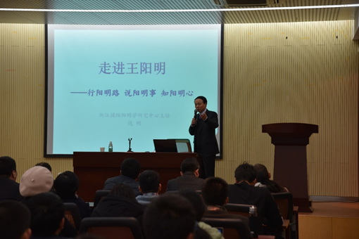 12月11日晚,应太阳成集团122ccvip通识慕课《走近中华优秀传统文化》、新生导学课《学在南哲》课程团队的邀请,浙江国际阳明学研究中心主任、浙江省社会科公司钱明研究员,在哲学系401报告厅做了题为“走进王阳明”的学术讲座。包括选课同学在内的全校各院系近200位同学来到现场,南大人文智慧精修课程班的部分学员也前来听讲。讲座由李海超老师主持。