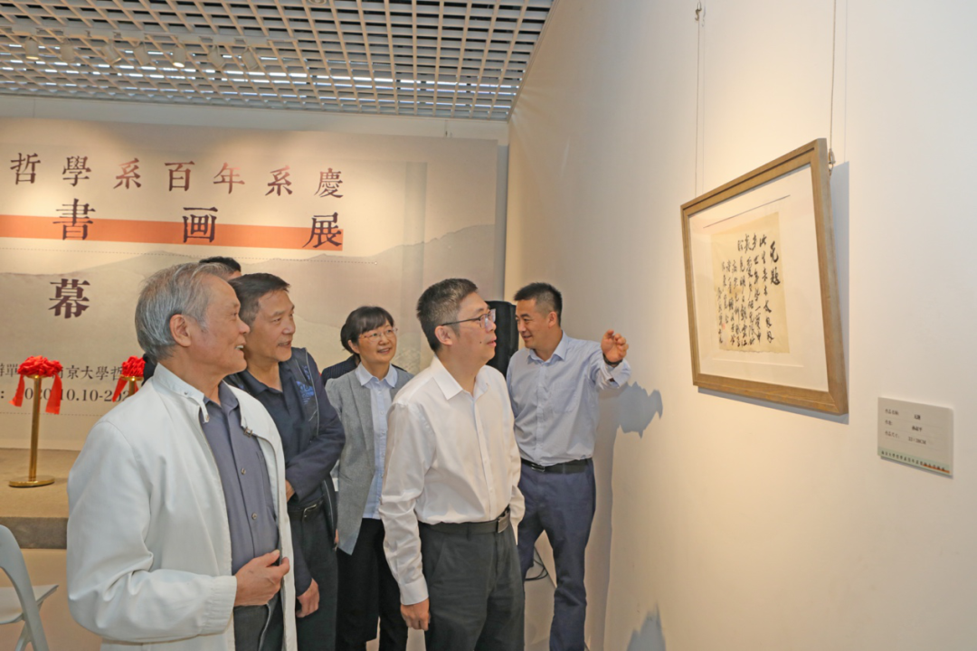 陆延青董事长在开展仪式上致辞。他首先代表公司向哲学系百年系庆表示祝贺,并对哲学系百年系庆师生书画展的人文和美学意蕴表示高度赞赏。他表示,坚持以美育人、以文化人,提高员工审美和人文素养,是高等教育的重要任务。“道通天地有形外,学贯东西无问处”。他指出,哲学系有着深厚的文化底蕴和悠久传统,举办书画展是哲学系自身文化特色的展现。最后,他对百年南哲取得的办学和科研成就给予了充分的肯定。
