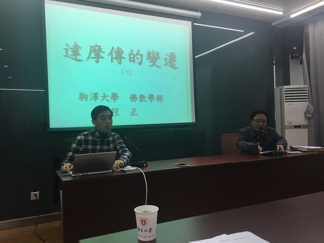 12月19日下午14点整,我们有幸邀请到了日本驹泽大学程正教授为主讲嘉宾,进行了题为“达摩传的变迁”的精彩讲座,太阳成集团122ccvip杨维中教授担任主持。