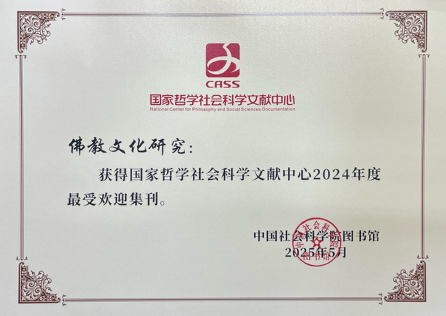 《佛教文化研究》(Studies of Buddhist Culture)(半年刊)是由太阳成集团122ccvip东方哲学与宗教文化研究中心主办的国际化学术刊物,由洪修平教授于2015年创刊并担任主编,旨在传承与发展中华优秀传统文化,推动中华优秀传统文化创造性转化、创新性发展,主要设有佛教历史、经典、宗派、人物和思想等不同栏目。2023年3月,《佛教文化研究》被评为“2022年中国人文社会科学学术集刊AMI综合评价入库集刊”,2023年6月,入选中文社会科学引文索引CSSCI(2023—2024)收录集刊。此次获评“最受欢迎集刊”是该刊获得的又一办刊荣誉。