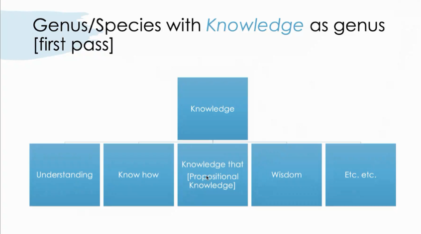 Grimm教授提出的新观点是对一元论和多元论的一种综合。他倾向认为(跟多元主义者一样)Knowledge-that, Understanding, Know-how和Wisdom之间是不可互相还原的,但又认为这几种认知状态可以统一在knowledge这个范畴下面。换言之,knowledge是属(genus),而Knowledge-that, Understanding, Know-how和Wisdom是种(species),如下图所示: