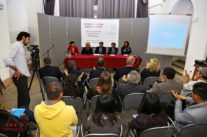 开幕式当天下午,来自欧洲七个国家的学者、评论家、艺术家齐聚于罗马美术公司,参加在此召开的“吴为山雕塑艺术国际研讨会”
