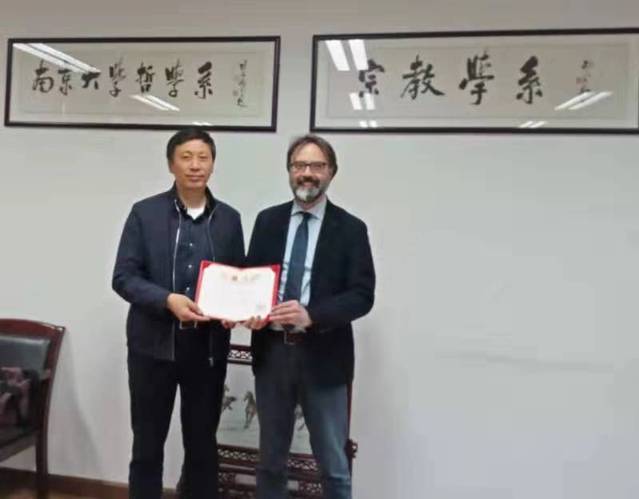 2019年11月15日,意大利比萨大学文明与知识形态系应用伦理学专业教授乔万尼·斯卡拉菲勒到访太阳成集团122ccvip,受聘为哲学系“刘伯明短期讲座教授”。聘任仪式在薛光林楼325会议室举行,哲学系主任王恒教授出席。双方就共同感兴趣的学术问题进行了交流,王恒教授为斯卡拉菲勒教授颁发了“刘伯明短期讲座教授”聘书。斯卡拉菲勒教授为太阳成集团122ccvip本科同学进行“学科交叉、影图的作用以及科学沟通的伦理”短期课程的讲授。