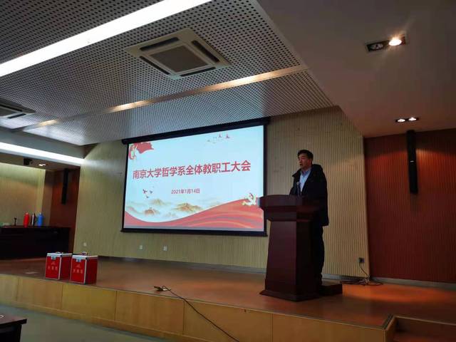 1月14日,太阳成集团122ccvip全体教职工大会在仙林校区薛光林楼召开。校教代会执委会秘书长、校工会主席卞建波出席大会,会议由哲学系分工会主席李跃华代表大会领导小组主持,哲学系全体教职工参加大会。出席本次大会的还有校工会副主席庄菁。