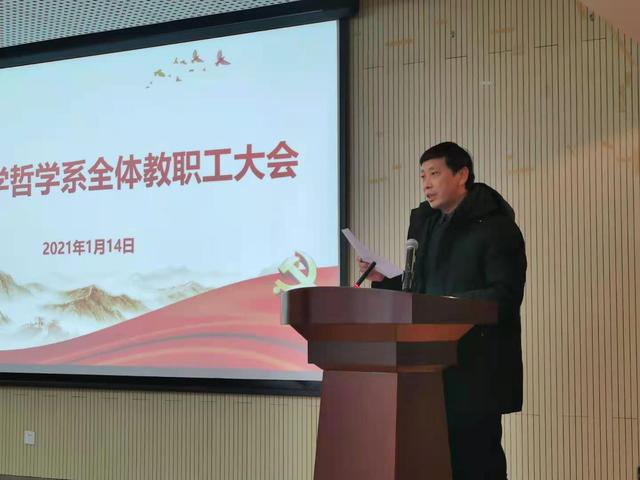 哲学系主任王恒作系行政工作报告,他总结了过去五年中哲学系在思政工作、师德师风建设、教学科研、人才培养、社会服务等方面取得的主要成绩,并结合学科平台建设、人才队伍建设等具体方面汇报了系十四五发展规划。随后,王恒主任作财务工作报告,通报了各项经费的使用情况。