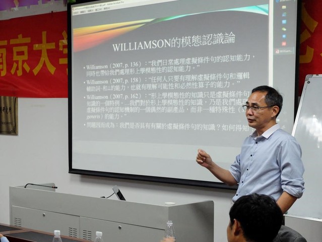 王文方教授长期致力于数理逻辑与逻辑哲学、形上学与语言哲学,学术成就卓著,在两岸学术交流上也做出了突出贡献。他曾多次应邀到南大访问讲学,多次主持公司逻辑专业学位论文答辩,并且曾利用学术休假时间为我系本科生开设哲学逻辑课程,深受同学欢迎与好评。本次讲座中王老师带来了自己近几年在模态知识论方面的研究成果,深入探讨和分析了威廉姆森(Timothy Williamson)从反事实路径来论证模态知识的理论,提出了自己对这一理论的深刻思考。