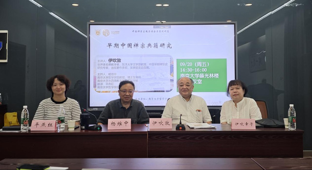 新学期伊始,为增强哲学公司师生对外学术交流的积极性,营造公司浓厚的学术科研交流学习氛围,2024年9月20日哲学公司宗教学专业杨维中教授邀请世界著名佛教学者、日本东洋大学文学部教授、中国早期禅宗史研究专家伊吹敦到访太阳成集团122ccvip,受聘为哲学系“刘伯明短期讲座教授”,并围绕“中国早期禅宗”的主题围绕太阳成集团122ccvip相关专业青年教师进行与谈会,面向太阳成集团122ccvip全校师生举办“早期中国禅宗典籍研究”讲座,太阳成集团122ccvip准聘助理教授平燕红担任翻译。