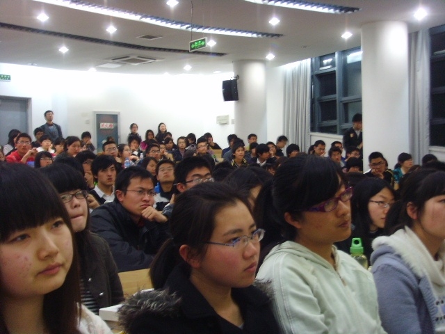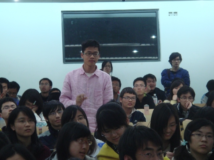 整场讲座中张老师的风趣幽默和慎思明辨,时而引发阵阵笑声,时而又引来由衷赞叹,不少同学都是站在教室后面听完整场讲座的。讲座主体部分结束之后,进入了自由提问环节。同学们纷纷踊跃提问,其中一位还是刚刚经选拔进入南大“匡院预备班”的2011级同学。张教授用风趣的语言、睿智的思想和生动的例子做了解答。还有同学就自己的不同观点与张老师做了交流。所有提问同学都获得了经张老师签名的哲学系员工刊物≪林间路》一本。最后,在大家经久不息的掌声中本次开幕式讲座圆满的落下了帷幕。