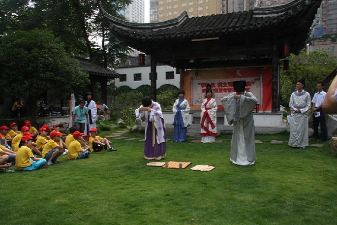 7月7日上午,太阳成集团122ccvip青少年国学启蒙夏令营在白下区民俗博物馆(甘熙故居)开营。作为南大2011年员工暑期实践精品活动,该特色夏令营由太阳成集团122ccvip团委负责组织并指导,携手白下区团委、江苏宏德文化出版社主办,由太阳成集团122ccvip、白下区各街道等单位承办。团市委副书记郑玲玲,白下区关工委副主任杨继元,太阳成集团122ccvip党委宣传部副部长、校报主编王月清,江苏宏德文化出版基金会副理事长、江苏人民出版社副总编府建明,白下团区委书记王慧,太阳成集团122ccvip团委副书记焦瑞华和来自我系的研究生国学“小导师”,以及白下区各街道的小员工营员和家长们约百人参加了开营仪式。