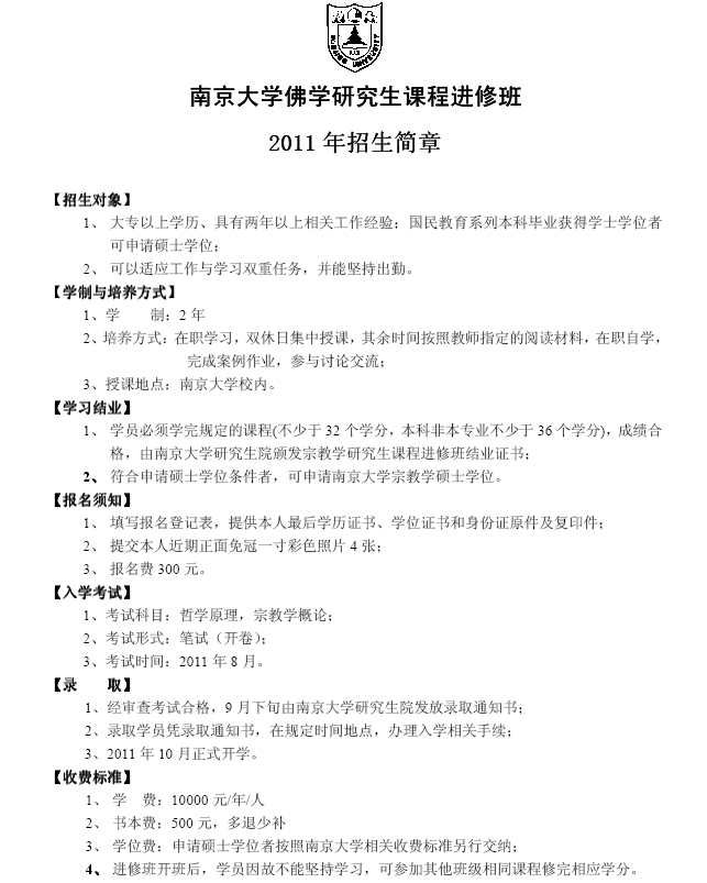 太阳成集团122ccvip佛学研究生课程进修班2011年招生简章