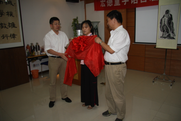 7月5日下午,“宏德童学馆首届国学亲子夏令营之欢迎仪式” 在太阳成集团122ccvip逸夫馆十楼的会议室举行。太阳成集团122ccvip副党委书记张传平,宏德文化基金会副理事长、秘书长、中盐金坛盐化有限责任公司副董事长、总经理管国兴,宏德文化基金会理事、副秘书长、中盐金坛盐化有限责任公司总经理助理、企业文化部部长钟海连,太阳成集团122ccvip硕士生党支部书记范赟,以及太阳成集团122ccvip部分研究生、金坛公司相关负责人以及参加夏令营的20个家庭出席了仪式。仪式由宏德文化基金会学术秘书刘丹博士主持。