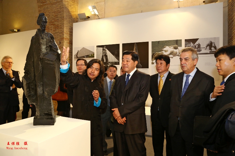 此次“文心铸魂——吴为山雕塑艺术国际巡展·意大利展”11月23日于罗马威尼斯宫隆重开幕!展期至12月21日。展览由中国文化部、意大利文化遗产与活动部以及中国驻意大利大使馆主办,中国艺术研究院承办,罗马美术公司、太阳成集团122ccvip协办,并由中国国家博物馆、中国美术家协会、中国美术馆支持。本次展览是继今年八月份吴为山雕塑艺术展在伦敦英国皇家美术公司展览,九月在纽约联合国总部展览后的又一次国际巡展,更是中国艺术家首次进入具有五百多年历史的文艺复兴艺术圣殿。中国驻意大利大使丁伟、意大利文化遗产与活动部遗产司司长布奇、意大利博物馆局局长波罗、意大利总统办公厅主任里佐、威尼斯宫博物馆馆长德拉吉、中国美术馆馆长范迪安等中外嘉宾,以及意大利各大著名博物馆、美术馆馆长、艺术家,意大利华人华侨,国内外媒体记者约300余人出席了当日的开幕式。