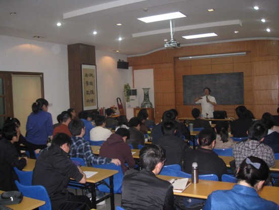 2011年4曰22日晚19时许,台湾著名学者林安梧先生应邀为哲学系、宗教学系师生做了一场有关《论语》及其本体诠释学思维的精彩讲座。林安梧先生详细阐述了何谓《论语》的本体诠释。林安梧先生强调,《论语》里的对话,大多有场景、有情境,我们现在对《论语》的诠释尤其要注意这一点。另外,在《论语》中,师生之间、员工之间的交谈、交流十分坦诚,是关乎生命的自然生发,而《论语》的本体即在于此。林安梧先生还从语言学的角度对《论语》的部分章节做了生动有趣的推论,并用闽南语即兴背诵了《论语》的部分章节。讲座深入浅出,娓娓道来,深受员工们喜爱。讲座结束后,林安梧先生还与员工们进行了互动,将讲座气氛推向了另一个高潮。